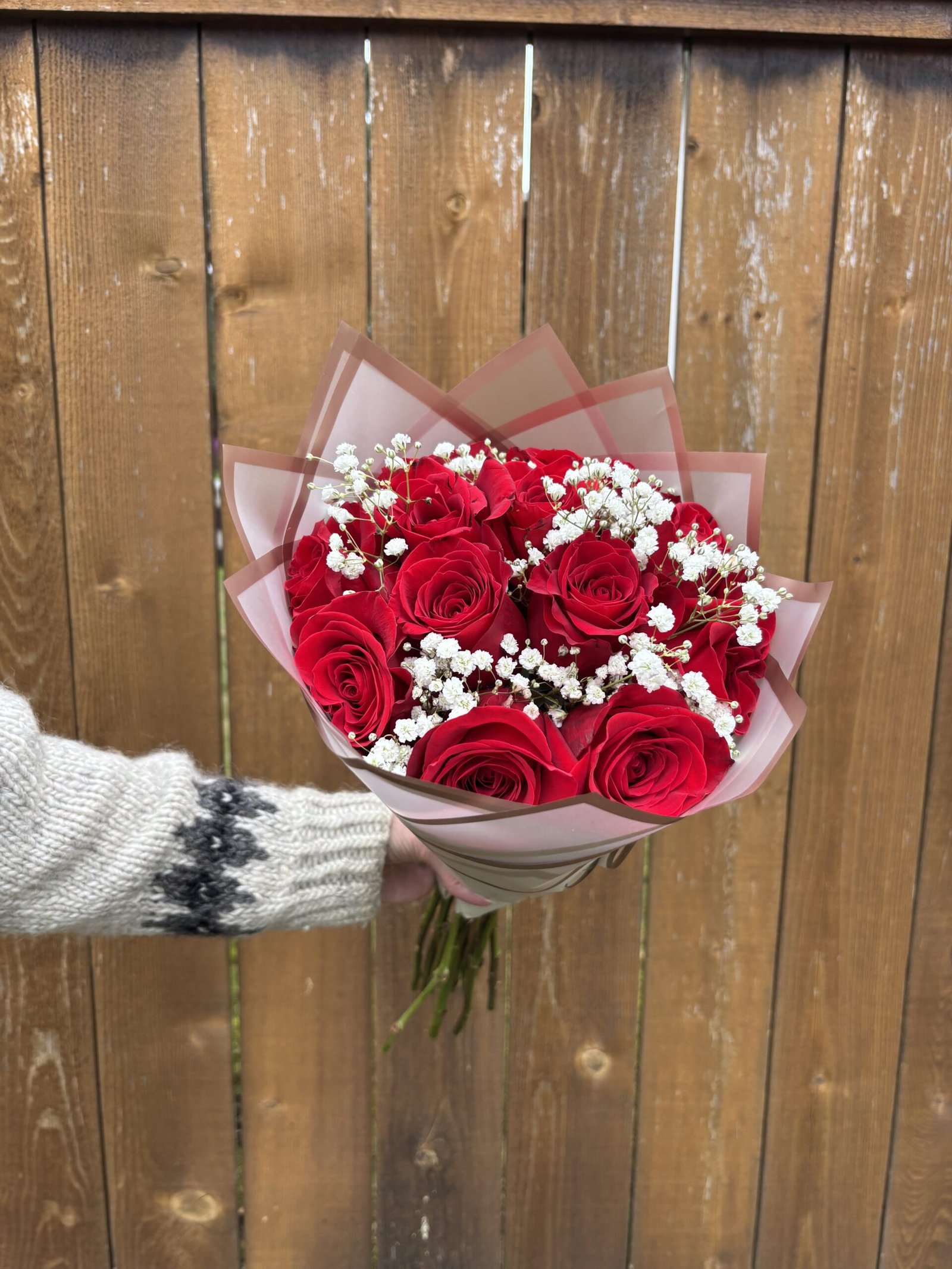Scarlet is a classic bouquet of deep red roses paired with delicate baby’s breath — the perfect blend of passion and elegance. Whether it’s for an anniversary, celebration, or “just because,” this bouquet says everything without a single word.